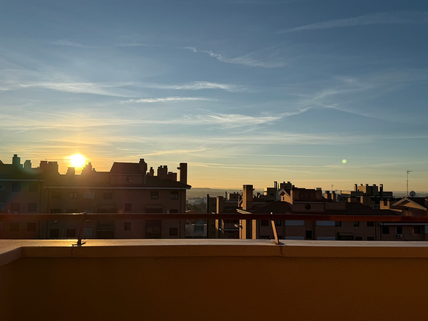This is what I see from my window during this block of work. We bought our apartment recently, and I always feel inspired by the views. In the previous two apartments I rented in Madrid, I had to get my head out of the window to see the sky. Now I see mostly sky :)