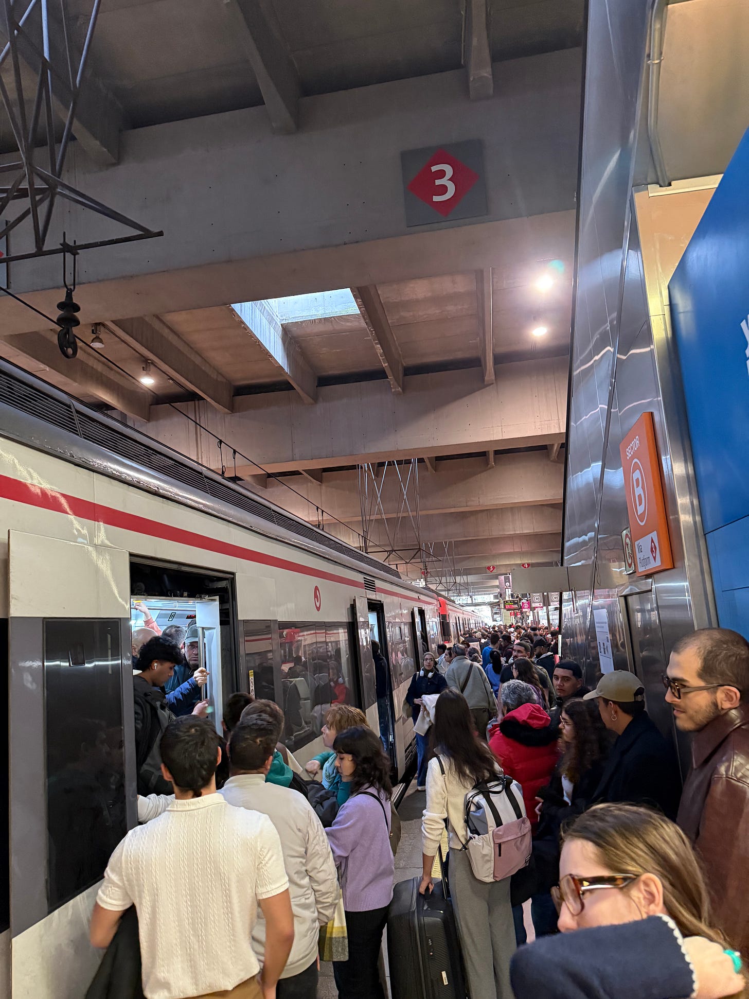 Once I’m at the station, I usually plug in a podcast until I arrive home. In the morning, I commute pretty “late” for Spanish standards, but around 7 pm, the train station is always full.