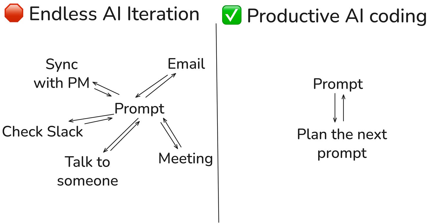 AI tools are doing the same. While the model generates code, we think we’re being productive by checking Slack, reading an email, or replying to a message.
