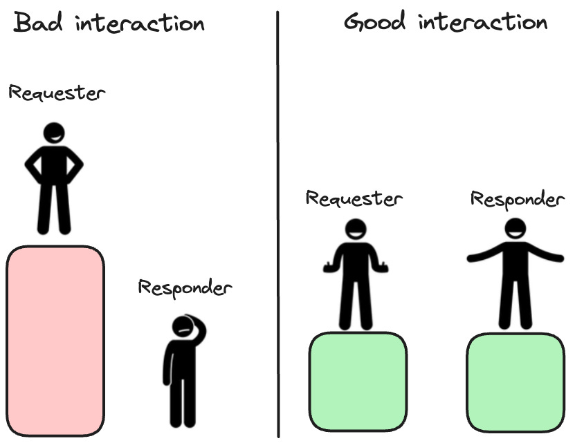 What we’ll do is change the dynamic away from a request-response where the responder has all the responsibility.