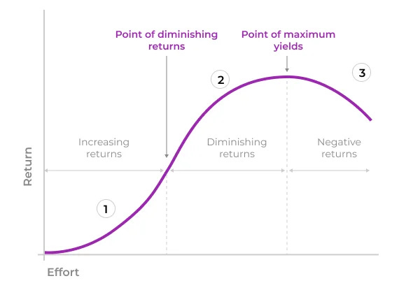 Without attention to health, relationships, or personal growth, you’ll start hitting diminishing returns. At the beginning, 1 unit of effort in career may achieve 1 unit of results. But at some point, that same 1 unit of efforts produces only 0.5 units of results.