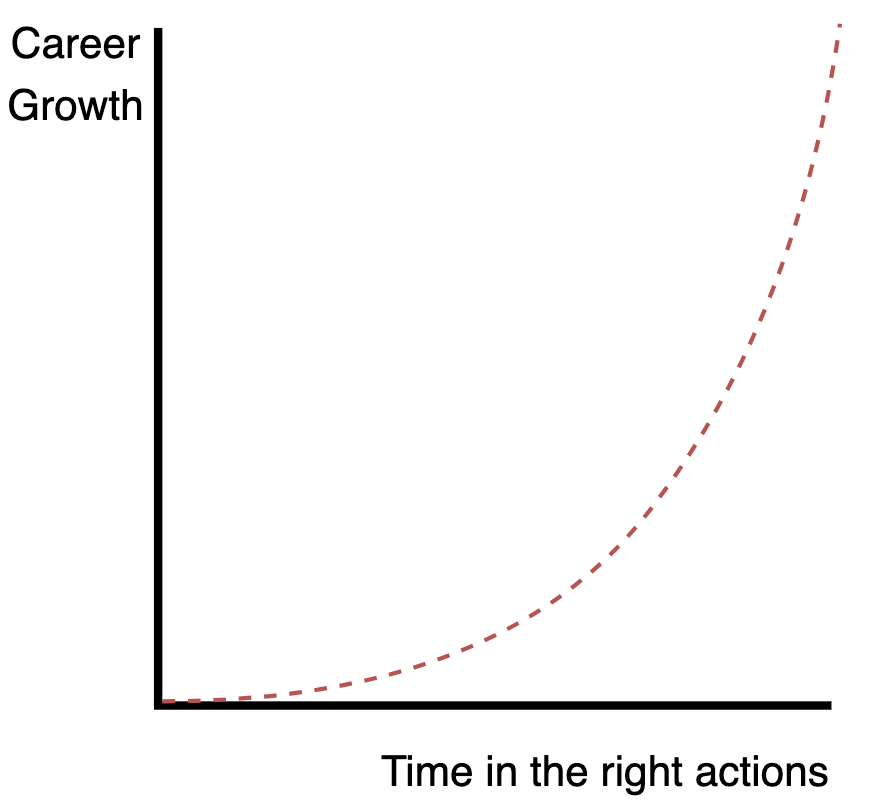 In investment, this is known as the compound effect. It’s about time in the market, not about timing the market. For our careers, we can maximize the time we are doing critical growth activities by starting early. This is the concept of career capital and deliberate practice from Cal Newport’s book “So Good They Can’t Ignore You“: Do the crucial actions for growth (deliberate practice), consistently, starting early. Over time your career capital will compound.