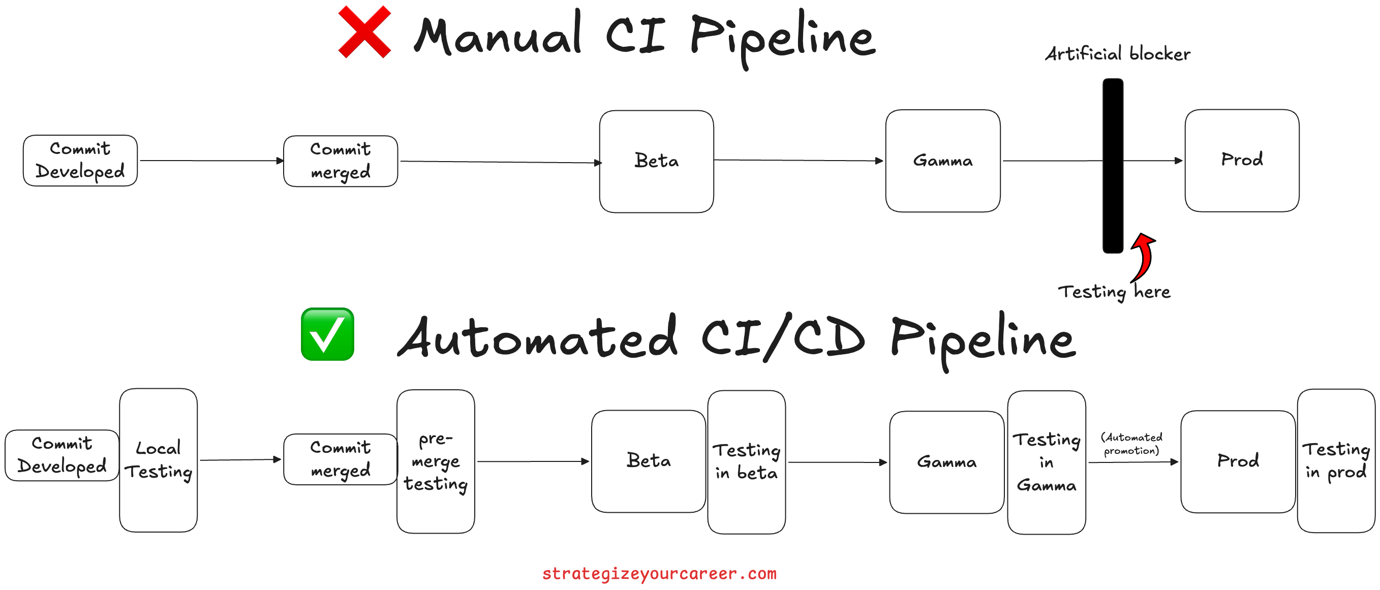 The transition from manual checks to automated deployment requires some specific improvements. I agree that it’s risky to just enable a transition between non-prod and prod without any of these automated guardrails.