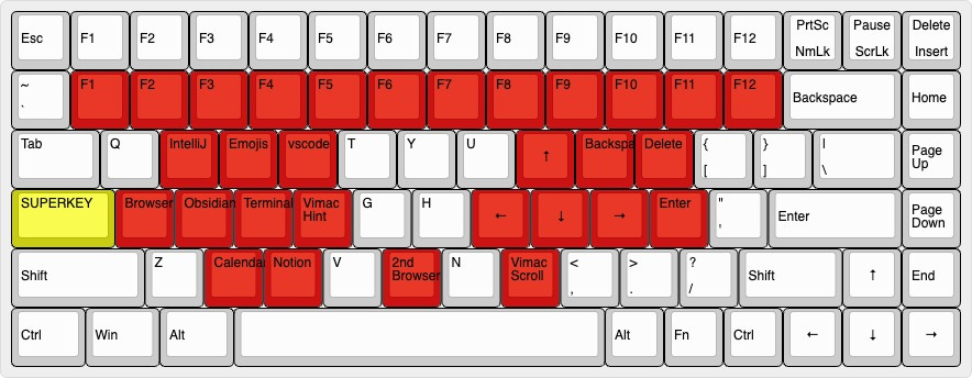 I remapped my caps lock key as a “SUPER KEY”. Hitting it enables a new layer for the keyboard.