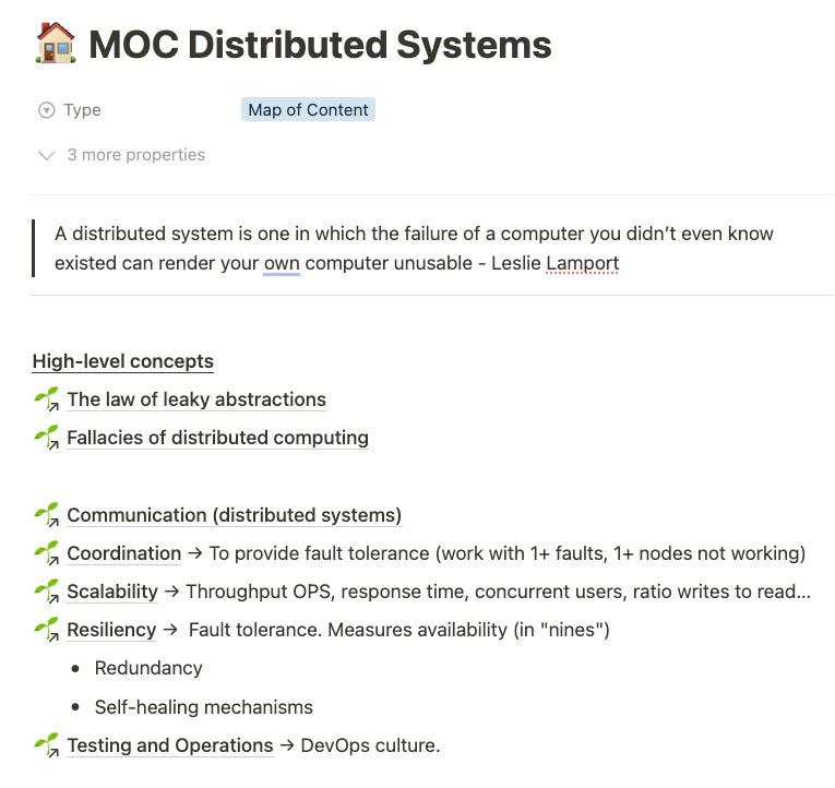 These notes are not hierarchical, but interconnected ideas. The only source of hierarchy is creating entry points, called MOCs (Maps of Contents). These are the place to start looking if I don’t remember the name of a particular note.