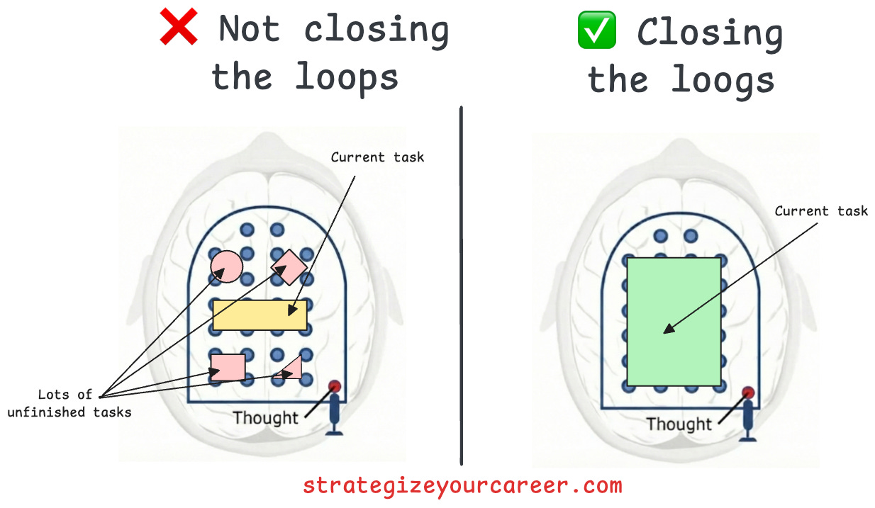 You need to close the loops. My fix is a shutdown ritual. Never leave a task halfway without a note. Before stopping for the day, write down the exact next step. This offloads the task from your brain to the paper. It allows you to disconnect and flush your mental RAM. And try to close your tasks instead of having many started but not finished. This frees your brain to dedicate more resources to the current task.