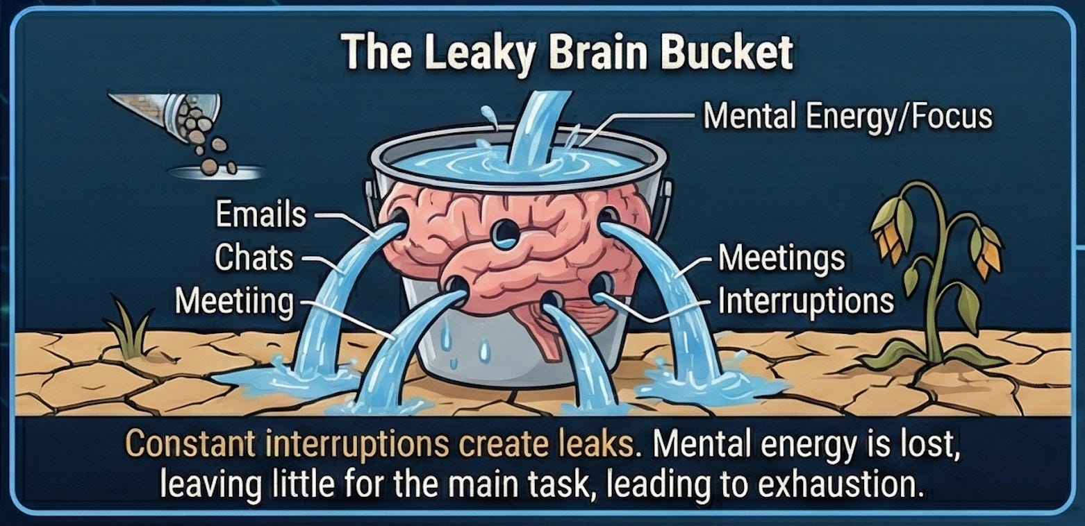 The real enemy is not the act of doing multiple things. It is uncontrolled context swapping. Your brain spends more “CPU cycles” loading and unloading context than it does processing the actual logic. You end up exhausted at the end of the day with very little finished work to show for it