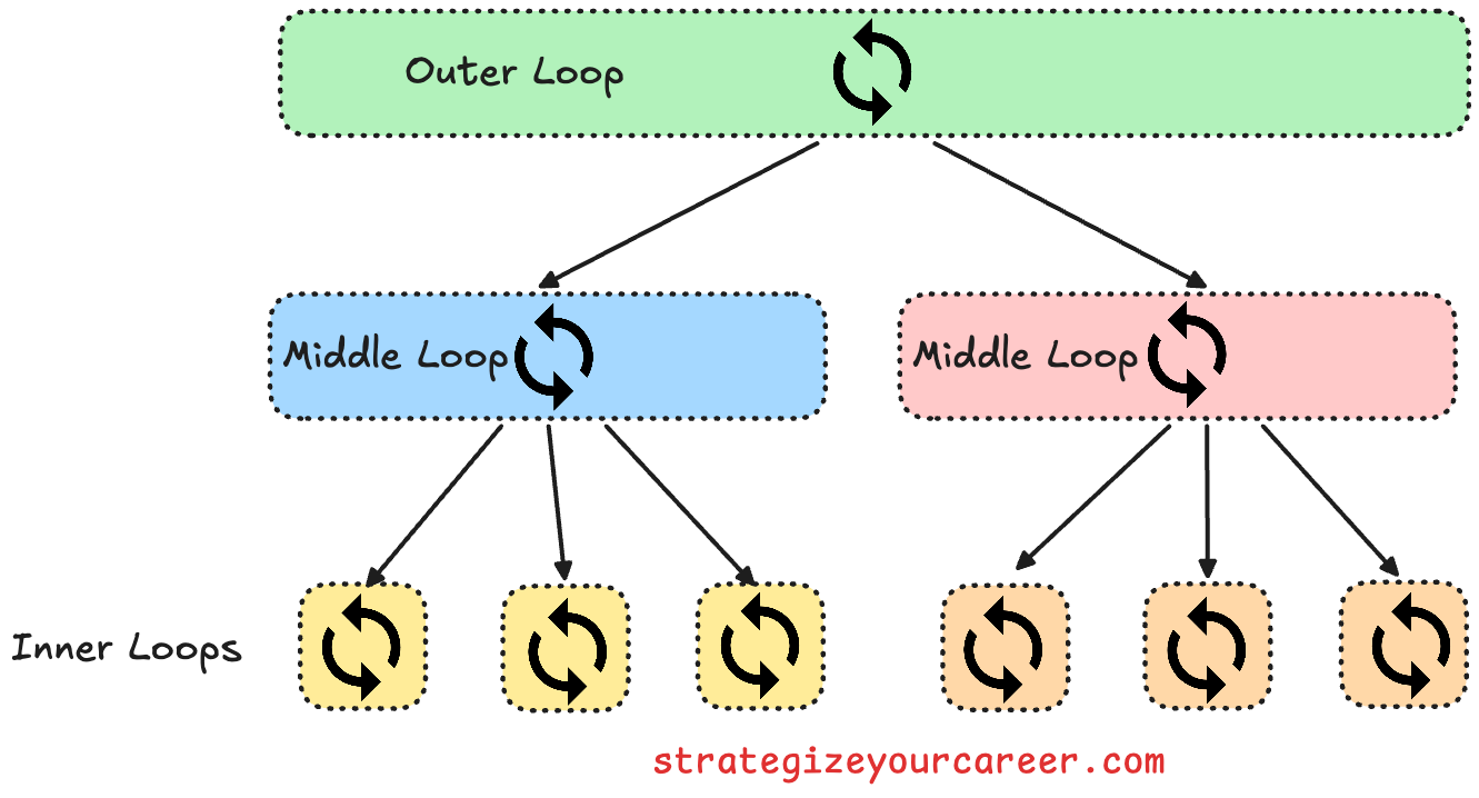The middle loop manages projects and task handoffs. This phase spans hours to days and involves the systems needed to pick up where work was left off. It’s like how chefs prepare ingredients before service and clean up after.