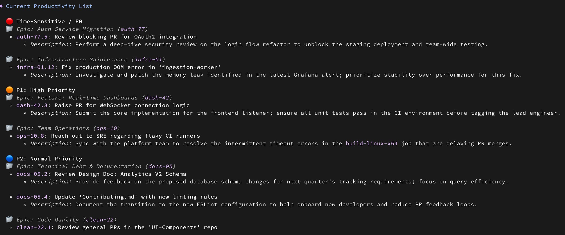 That’s why I ask the next morning for a report of what the AI did while I was sleeping, and what I need to do next. Thanks to managing my task lists with AI in my terminal, as I showed before, my morning report is very easy to generate.