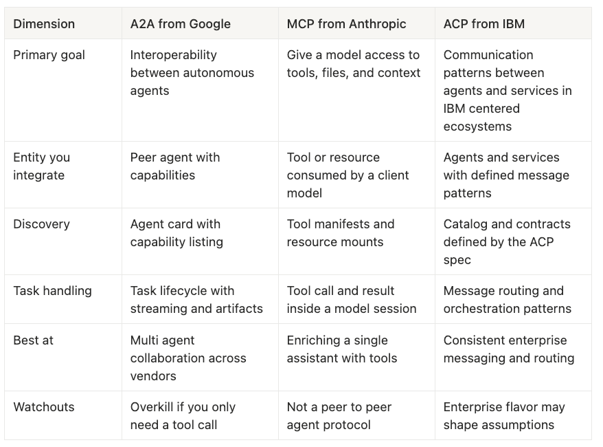 Some rapid-fire questions about the A2A, ACP, and MCP protocols