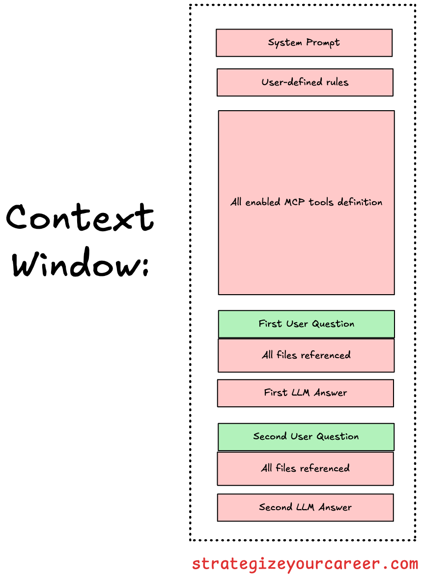 You may think that you’re consuming a small piece of the context window with a prompt like “explain @FileA and @FileB“, but here’s the reality: